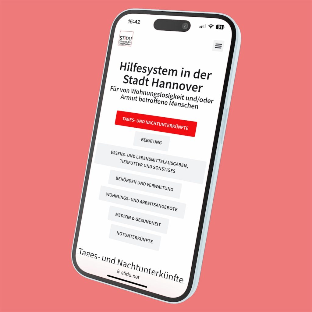 Wir freuen uns, Euch mitteilen zu können, dass unsere Hilfeseite www.stidu.net/hilfe umfassend aktualisiert wurde! Als Verein „STiDU – Stimme der UngeHÖRTen e.V.“ setzen wir uns unermüdlich für wohnungs- und obdachlose Menschen in Hannover ein. Unsere Webseite bietet nun eine noch klarere und benutzerfreundlichere Struktur, damit Betroffene schnell die benötigte Unterstützung finden. Was ist neu? ✔ […]