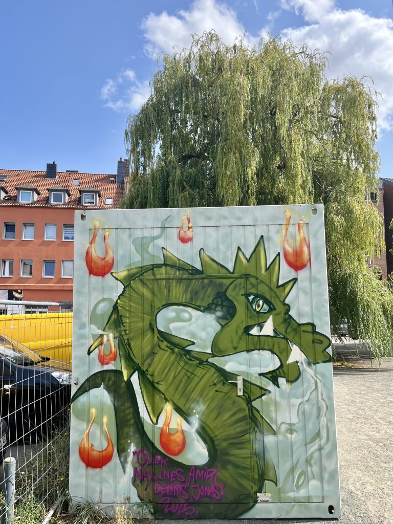 Das Besondere: Das Graffiti-Kunstwerk am Container wurde nicht nur von Künstlern gestaltet, sondern auch von Menschen, die selbst ohne Wohnung leben. So ist ein Symbol für Gemeinschaft und gegenseitige Wertschätzung entstanden. Eine der Botschaften berührt besonders: Das Wort „Liebe“, zusammengesetzt aus den Anfangsbuchstaben von „Lasst immer eine Brücke entstehen!“.
